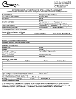 To apply for credit with us, download the credit application using the link below or by clicking on the image to the right. Print the application, fill it out, and mail or fax it back to us.